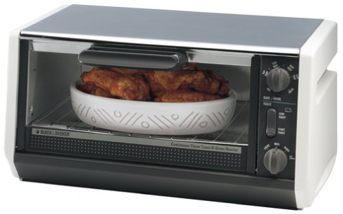 Black & Decker Toast-R-Oven with 0.25 cu.ft. capacity, electronic toast controls, broil function, non-stick interior, slide-out crumb tray, reheat function, forward rack, chrome bottom.